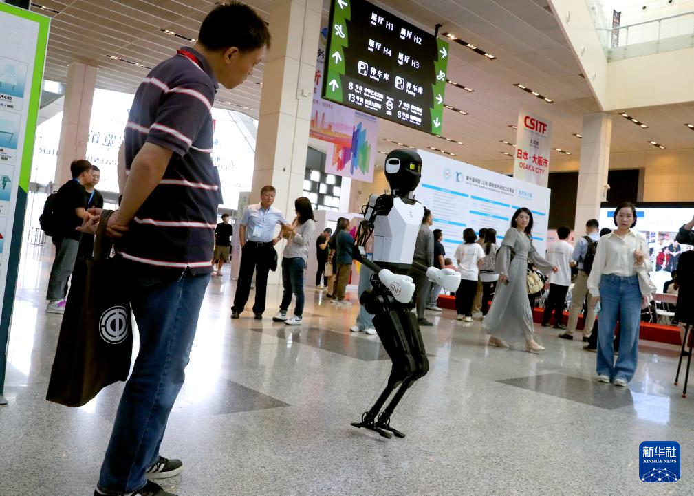 觀眾在上交會上觀看人形機器人行走演示。新華社記者方喆 攝