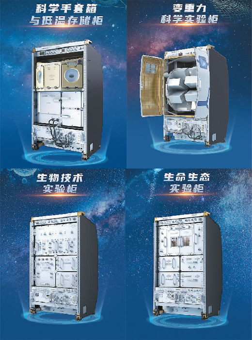 除了無容器材料實驗柜之外,天和核心艙內(nèi)還有高微重力實驗柜,為航天醫(yī)學(xué)分析、基礎(chǔ)物理研究等提供理想的微重力實驗環(huán)境。問天實驗艙部署了生命生態(tài)實驗柜、生物技術(shù)實驗柜、科學(xué)手套箱與低溫存儲柜、變重力科學(xué)實驗柜以及艙外暴露實驗裝置等科學(xué)實驗設(shè)施。夢天實驗艙則配置了13個標準載荷機柜,目前已裝載了超冷原子物理實驗柜、高精度時頻實驗柜、高溫材料科學(xué)實驗柜、兩相系統(tǒng)實驗柜、流體物理實驗柜、燃燒科學(xué)實驗柜等實驗“神器”,主要面向微重力科學(xué)研究。