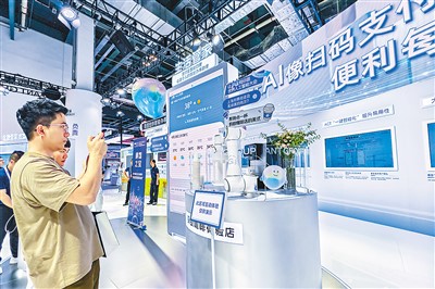 不斷發(fā)展的人工智能技術(shù),為支付機(jī)構(gòu)優(yōu)化服務(wù)提供了支撐。近日,在上海舉行的2024世界人工智能大會上,觀眾通過基于螞蟻百靈大模型的“支付寶智能助理”現(xiàn)場下單咖啡。王 初攝(人民視覺)