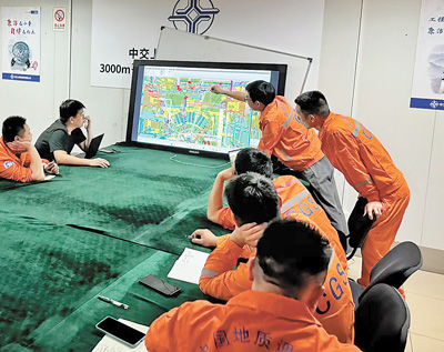 科研人員在研究“夢(mèng)想”號(hào)設(shè)計(jì)圖紙。 廣州海洋地質(zhì)調(diào)查局供圖