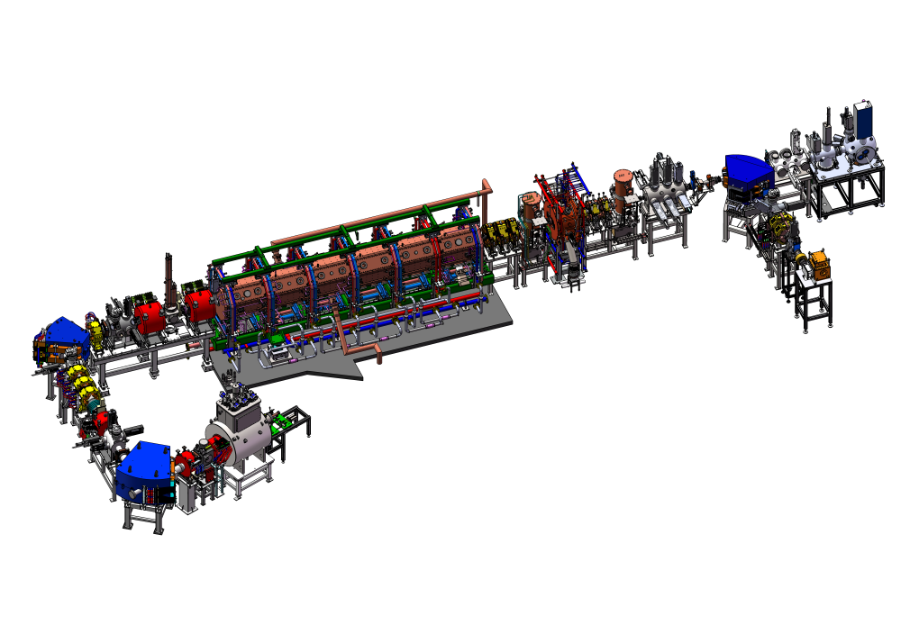 低能量強(qiáng)流高電荷態(tài)重離子研究裝置示意圖。(中國科學(xué)院近代物理研究所供圖)