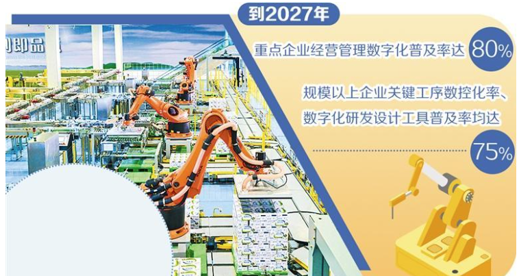 工業(yè)和信息化部等7部門日前印發(fā)《食品工業(yè)數(shù)字化轉(zhuǎn)型實(shí)施方案》(以下簡稱《實(shí)施方案》)提出,到2027年,重點(diǎn)企業(yè)經(jīng)營管理數(shù)字化普及率達(dá)80%,規(guī)模以上企業(yè)關(guān)鍵工序數(shù)控化率、數(shù)字化研發(fā)設(shè)計(jì)工具普及率均達(dá)到75%,打造百個(gè)數(shù)字化轉(zhuǎn)型典型應(yīng)用場(chǎng)景,梯次實(shí)施千個(gè)數(shù)字化示范(試點(diǎn))項(xiàng)目。