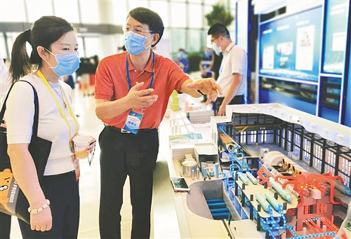 國家電投集團(tuán)的專家在模型前向參觀者介紹國家科技重大專項(xiàng)成果——國和一號(CAP1400)壓水堆核電站。經(jīng)濟(jì)日報(bào)記者 佘惠敏攝