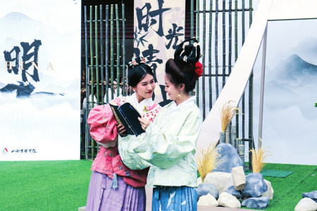 近日,山西傳媒學(xué)院在太原市萬柏林區(qū)萬象城下沉廣場舉辦了“漢服印象”傳統(tǒng)服飾教學(xué)成果展演。活動現(xiàn)場,35名來自該校的大二學(xué)生,均身著漢、唐、宋、明等朝代的服飾,向現(xiàn)場的觀眾展示了60套獨具特色的原創(chuàng)設(shè)計作品,并進行了沉浸式國風(fēng)走秀教學(xué)成果展演和氣氛熱烈的古詩詞問答互動節(jié)目。