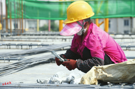 當日,是入伏第一天,意味著開始進入一年中最熱的時候。在熱火朝天的施工現(xiàn)場,工人師傅們埋頭苦干,他們雖然戴著自制遮陽帽、冰袖,身旁放著水壺,但一小會兒工夫就會汗流浹背?!斑@樣的杯子,我每天要喝好幾杯水。”天氣太熱,來自四川樂山的林英把杯子里的水一飲而盡。黝黑的皮膚、如雨的汗水、潮濕的后背……當大多數(shù)人避暑納涼時,不少勞動者卻辛勤地揮灑著汗水,堅守在施工一線。在這個工地上,有很多和林英一樣的打工人,他們來自全國各地,用青春和汗水建設(shè)美麗山西。