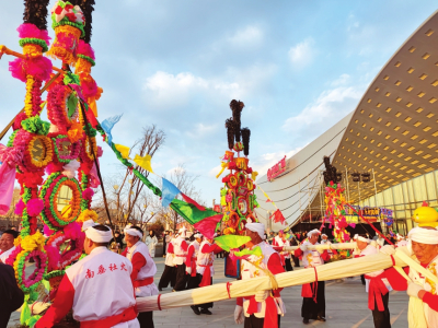 “中莊秧歌”等傳統(tǒng)非遺項(xiàng)目在陽(yáng)城縣天官王府景區(qū)開演。
