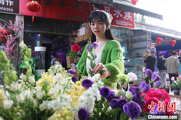3月23日,安徽省合肥市裕豐花鳥(niǎo)魚(yú)蟲(chóng)市場(chǎng),“Z世代”女孩詹銀銀正在挑選鮮花,準(zhǔn)備擺攤銷售。隨著氣溫回升,鮮花市場(chǎng)迎來(lái)一波熱度。記者近日在采訪中了解到,中國(guó)年輕人正在通過(guò)各種鮮花消費(fèi)場(chǎng)景把春天“帶回家”,鮮花消費(fèi)已突破固有的節(jié)日專屬儀式感,成為年輕人日?!皭偧骸钡闹匾绞?。中新社記者 張強(qiáng) 攝
