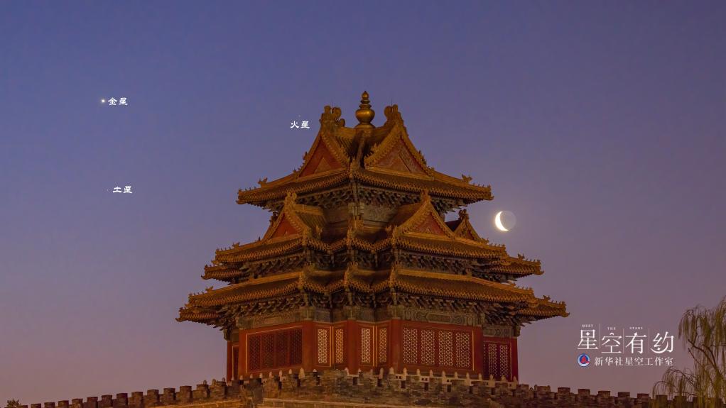 北京星空攝影愛好者吳魯萍2022年3月28日清晨在北京拍攝的金星、火星、土星與殘?jiān)隆#ū救斯﹫D)