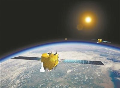 第五十九、六十顆北斗導(dǎo)航衛(wèi)星在軌示意圖。中國(guó)科學(xué)院供圖