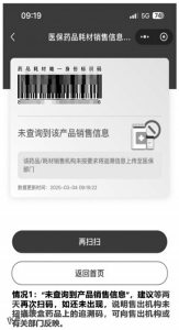 “未查詢到產(chǎn)品銷售信息”,建議等兩天再次掃碼,如還未出現(xiàn),說明售出機構(gòu)未掃描該盒藥品上的追溯碼,可向售出機構(gòu)或有關(guān)部門反映。