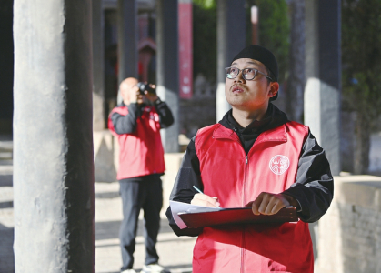 “問診”環(huán)節(jié),團隊成員現(xiàn)場抄錄碑刻、實地走訪文物建筑所在地老者、查閱相關(guān)資料典籍求問古人,“問詢”建筑歷史沿革及修繕記錄,制定針對性修復(fù)方案。