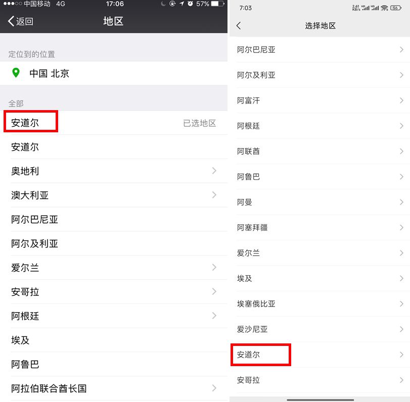 很多人在注冊(cè)微信的時(shí)候,沒在列表中翻找自己真正的所在地,微信就默認(rèn)選擇了排在第一的安道爾。