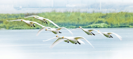 生態(tài)蝶變帶來(lái)了生物多樣性的躍升,鳥(niǎo)類種類從2021年前的100余種增至240多種,越冬天鵝數(shù)量從幾十只壯大到二百多只,反嘴鷸集群起飛鋪就“鳥(niǎo)浪”奇觀。