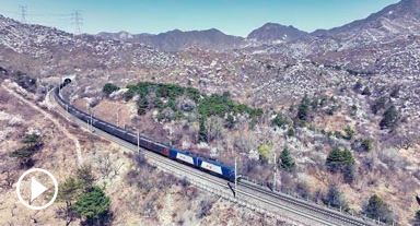 大秦線上滿載“烏金”的萬噸重載電煤列車在花海中穿山越嶺,高效運輸能源物資,全力保障民生用電需求,繪就春日里的能源保供最美畫卷。