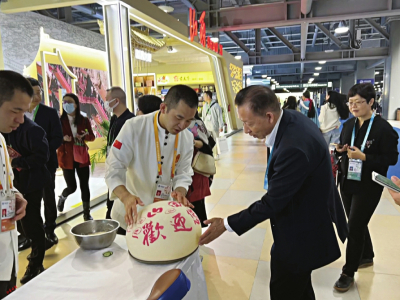 “此次參會(huì),山西會(huì)務(wù)集團(tuán)特別準(zhǔn)備了近年推陳出新、改良工藝的美食新品,希望以美食為載體,以文化為橋梁,讓更多人了解山西、走進(jìn)山西、愛(ài)上山西、投資山西?!蓖醮喝A說(shuō),“從連續(xù)幾天觀眾的反饋來(lái)看,山西刀削面、莜面栲栳栳最受大家歡迎,每天都有人排長(zhǎng)隊(duì)品嘗,可以說(shuō)供不應(yīng)求。此外,酥脆香甜的原平鍋盔、用石子炒制的石頭餅、精心烘焙的黃花餅、經(jīng)典小吃柳林碗托等都是觀眾愛(ài)吃的‘爆款’,再配合精彩的面食表演,來(lái)往客商連連點(diǎn)贊,直呼好吃好看?!?/p>