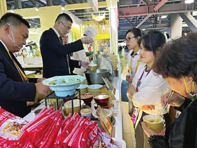 “想的就是這一口濃濃的山西味道??!”在上海讀書(shū)、工作十余年的長(zhǎng)治姑娘小鄧提前預(yù)約觀展,特地找到山西展區(qū),讓她最驚喜的是,在這里能夠飽嘗最正宗的家鄉(xiāng)味道!她一邊在山西刀削面的展位前排隊(duì)等候,一邊告訴山西晚報(bào)記者。