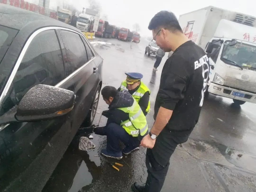 春運期間,一輛私家車行至呂梁南高速柳林西段時,輪胎突然爆裂,柳林西收費站當班班長王晉帶領收費員,從站區(qū)取出千斤頂幫助司機更換備胎,并就近尋找車輛維修點,助其平安返鄉(xiāng)。