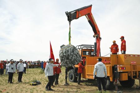 25日14時(shí)7分,嫦娥六號(hào)返回器準(zhǔn)確著陸于內(nèi)蒙古四子王旗預(yù)定區(qū)域,工作正常,探月工程嫦娥六號(hào)任務(wù)取得圓滿成功,實(shí)現(xiàn)世界首次月球背面采樣返回。