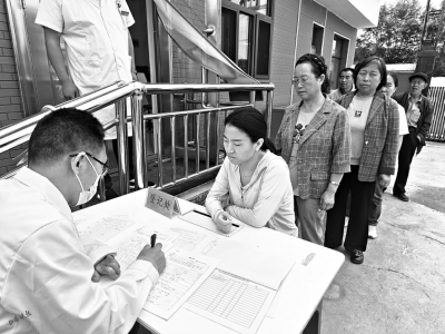 “有沒有基礎(chǔ)疾病?”“有沒有過敏史?”“早上吃飯了沒?”……8月20日10時,在靜樂縣杜家村鎮(zhèn)中心衛(wèi)生院的門口,等著要體檢的村民們已經(jīng)排起了長隊。
