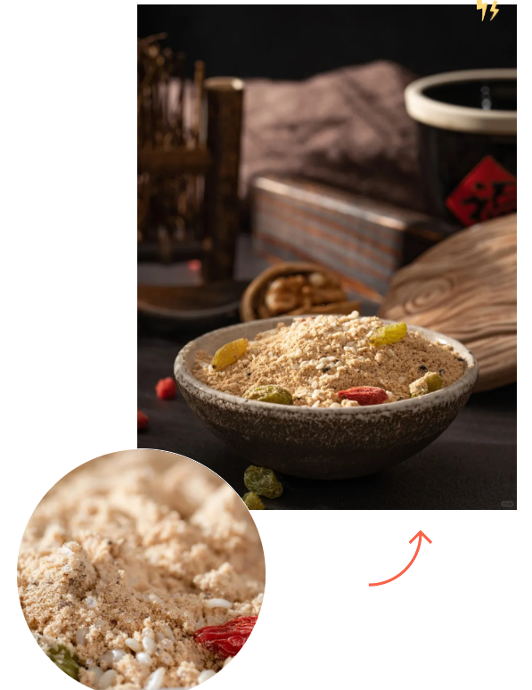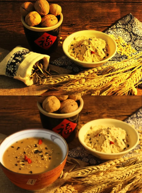 這款小吃由五谷雜糧粉和堅(jiān)果炒制而成,加入開水即可飲用,無(wú)論是搭配油條還是咸菜,都別有一番風(fēng)味。