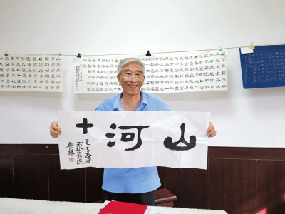 5月16日,“山西姥爺”王朝珠,以筆墨為禮,祝賀“山河+”客戶端全新啟程。山西晚報·山河+記者 王晉磊攝