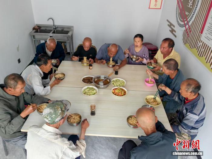 老人們在老年食堂用餐。岢嵐縣委組織部供圖