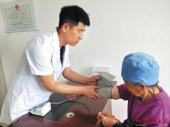 靜樂(lè)縣把健康扶貧和關(guān)愛送到村民家門口,為貧困群眾提供了實(shí)實(shí)在在的便利。圖為近日中莊鄉(xiāng)史家?guī)X村鄉(xiāng)村醫(yī)生邱晉德在為村民測(cè)量血壓。 閆曉梅 攝