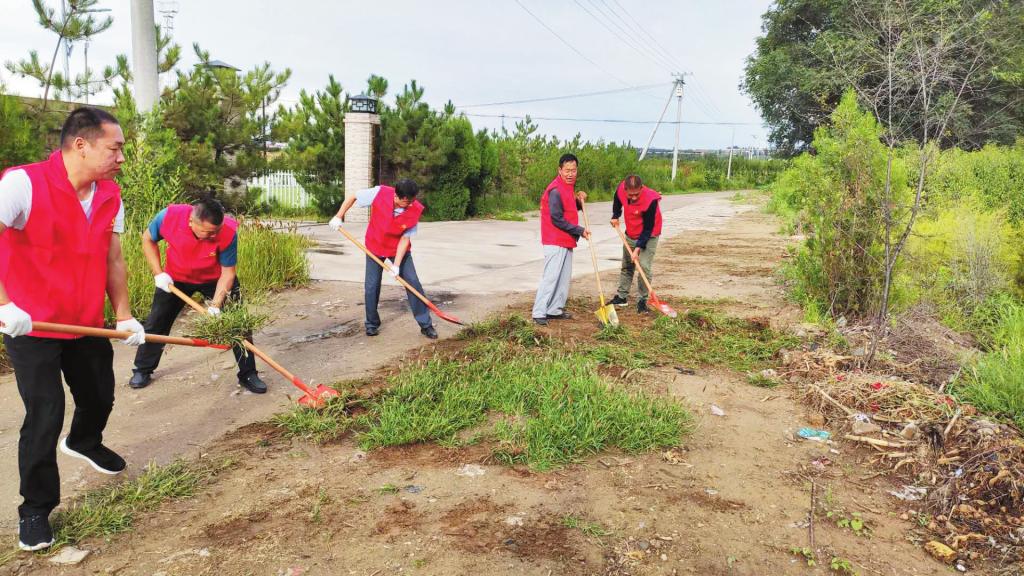 活動中,氣象志愿者們身著紅馬甲,相互配合,有的除雜草,有的拾垃圾,對所轄社區(qū)內衛(wèi)生死角進行了徹底清理。 段永升 攝