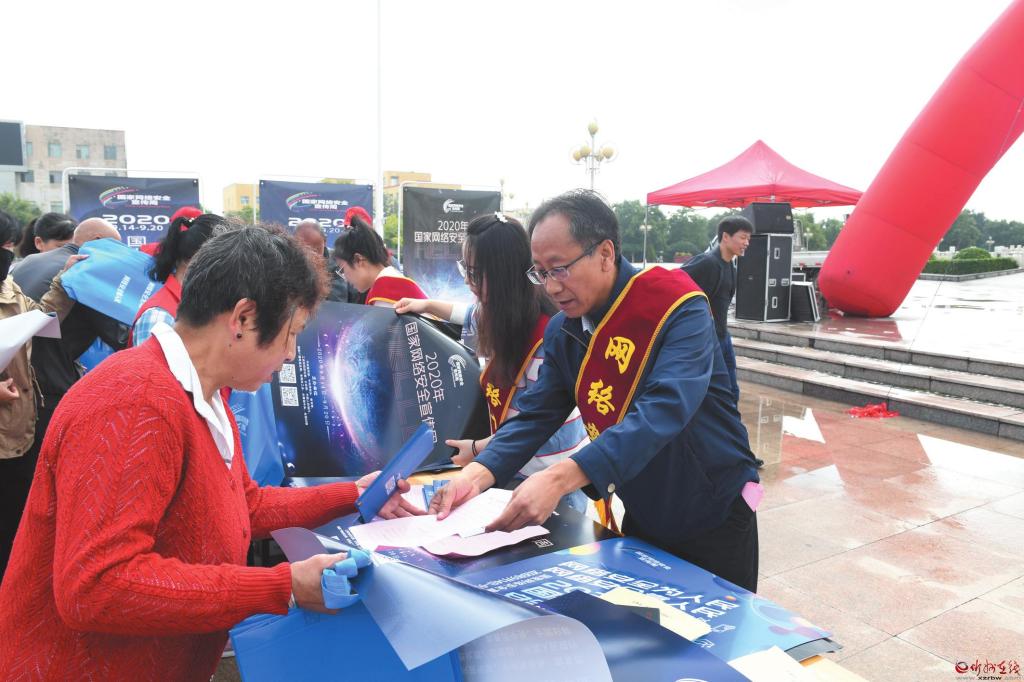 在2020年國家網(wǎng)絡(luò)安全宣傳周活動中,定襄縣采取多部門聯(lián)合的方式,通過懸掛宣傳橫幅、擺放宣傳展板、發(fā)放網(wǎng)絡(luò)安全知識手冊等形式,深入宣傳數(shù)據(jù)安全管理、個人信息保護(hù)等方面的法規(guī)、標(biāo)準(zhǔn),并重點(diǎn)圍繞個人信息保護(hù)、網(wǎng)上交易辦理、惡意軟件清理、金融詐騙防范等市民關(guān)心關(guān)注的內(nèi)容開展宣講、提供咨詢服務(wù),切實提高廣大人民群眾網(wǎng)絡(luò)安全意識和防護(hù)技能,引導(dǎo)廣大群眾依法用網(wǎng)、文明用網(wǎng),營造健康文明的網(wǎng)絡(luò)環(huán)境。圖為9月15日縣城宣傳現(xiàn)場。 張玉虎 攝