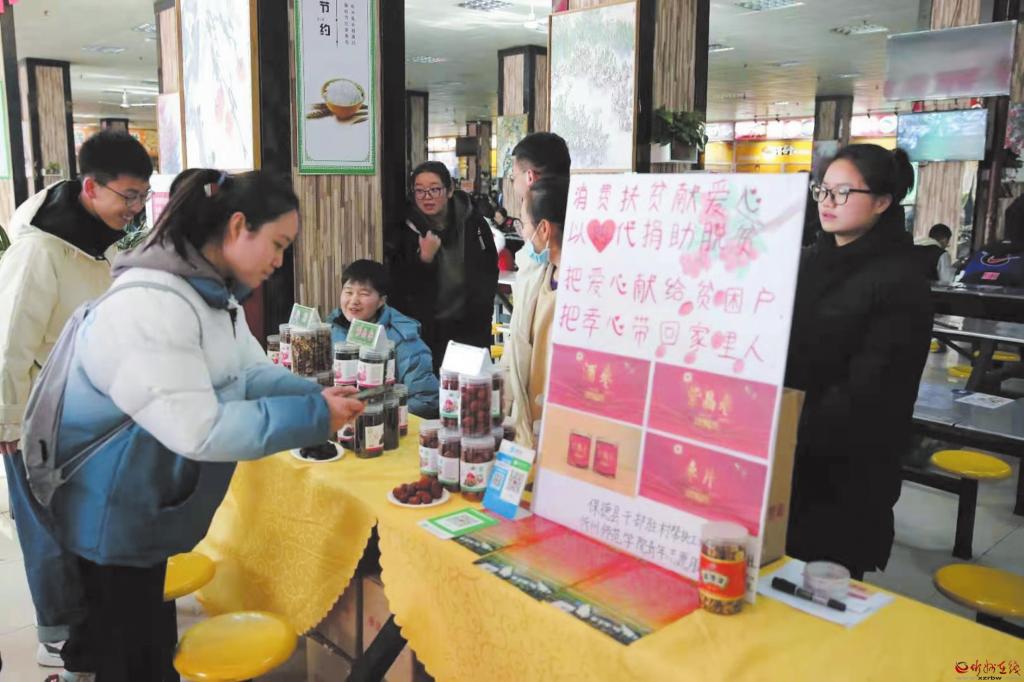“以購代捐”活動改變了以往的捐贈模式,讓定點(diǎn)幫扶村的產(chǎn)品變成了商品,有效解決了農(nóng)產(chǎn)品銷路問題,既激發(fā)了農(nóng)民群眾努力生產(chǎn)、勤勞致富的積極性,又拉近了廣大師生與農(nóng)民的距離,形成了“我勤勞、我致富”“我參與、我幸?!钡牧己梅諊?(武大力)