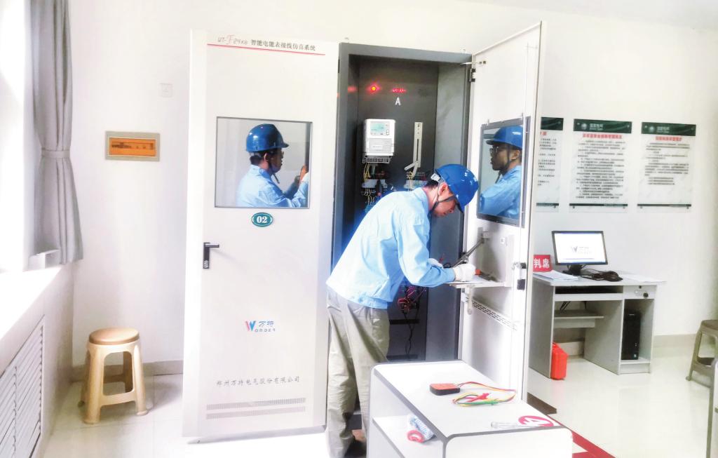 近日,忻州供電公司計量中心在大同電校組織開展了“工匠計劃”采集運維專業(yè)技能精英人才考核??己藢ο鬄楣静杉\維專業(yè)精英團隊成員,考核內(nèi)容為“計量錯接線判定及電量追補實操”“裝表接電及采集調(diào)試實操”和“理論考試”三部分。通過考核,大大提升了公司技能人才對自身職業(yè)的自豪感和認同感,為公司全面實施“工匠計劃”提供了強有力的保障。圖為考核現(xiàn)場。 (崔一鳴 攝)
