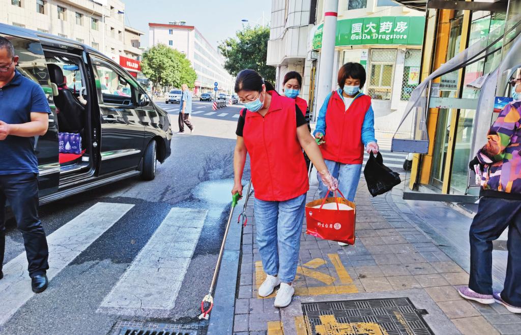 學(xué)生志愿者在街頭開展服務(wù)活動(dòng)