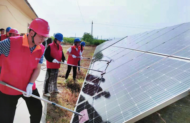 隱患排查完畢后,黨員服務(wù)隊(duì)配合光伏運(yùn)維管理單位的工作人員,細(xì)致地對每一塊光伏板表面的污垢進(jìn)行了清理,以提高光伏板的發(fā)電效率,為推進(jìn)“雙碳”目標(biāo)貢獻(xiàn)力量。(記者 王 晟)