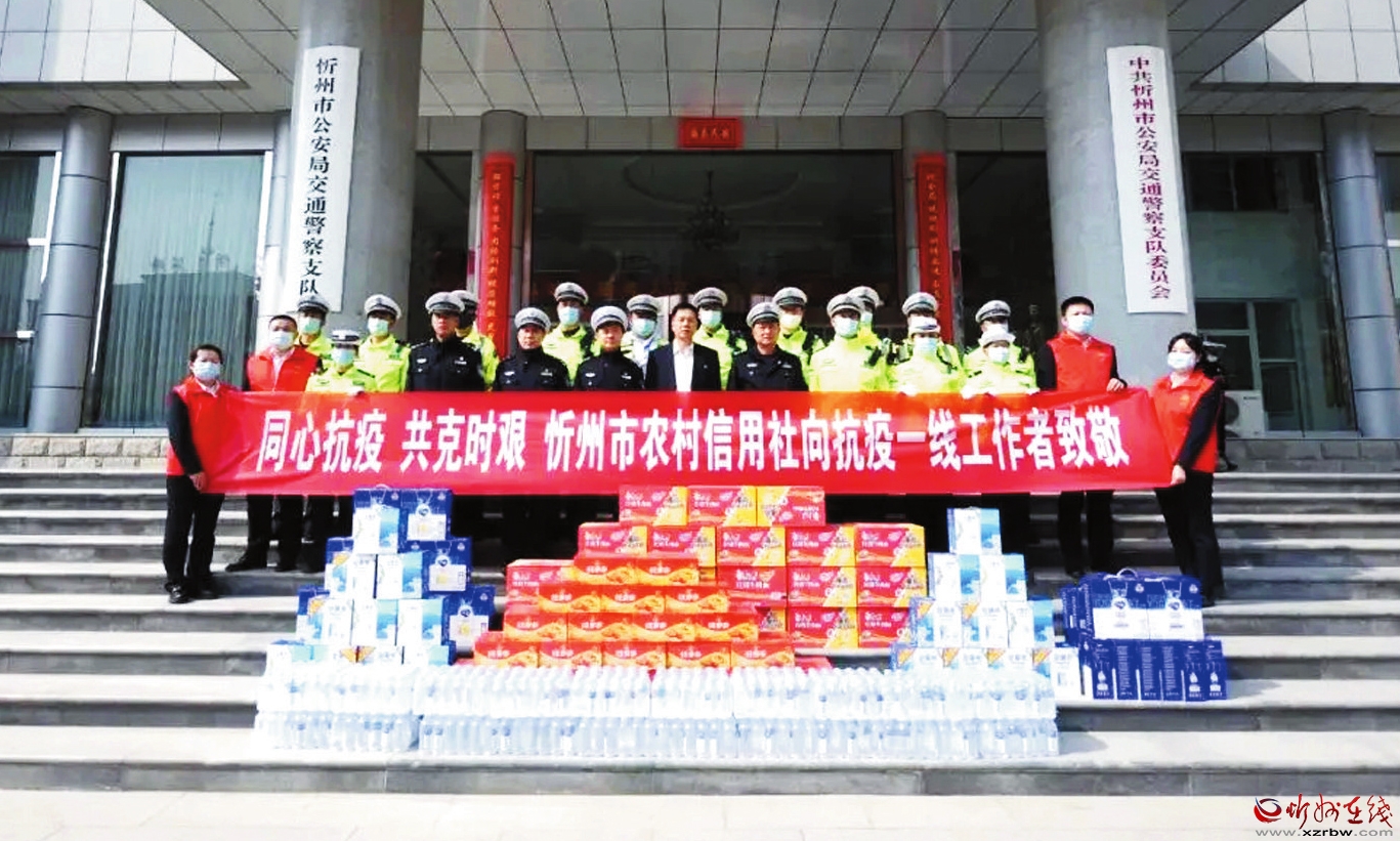 為助力全市疫情防控工作,4月18日,市聯(lián)社組織干部員工看望慰問市公安局交警支隊(duì)抗疫一線的工作人員,為他們送上方便面、礦泉水等100余箱慰問品,以實(shí)際行動向夜以繼日奮戰(zhàn)在防控一線的工作人員致以崇高的敬意和衷心的感謝。(楊 煦 攝)