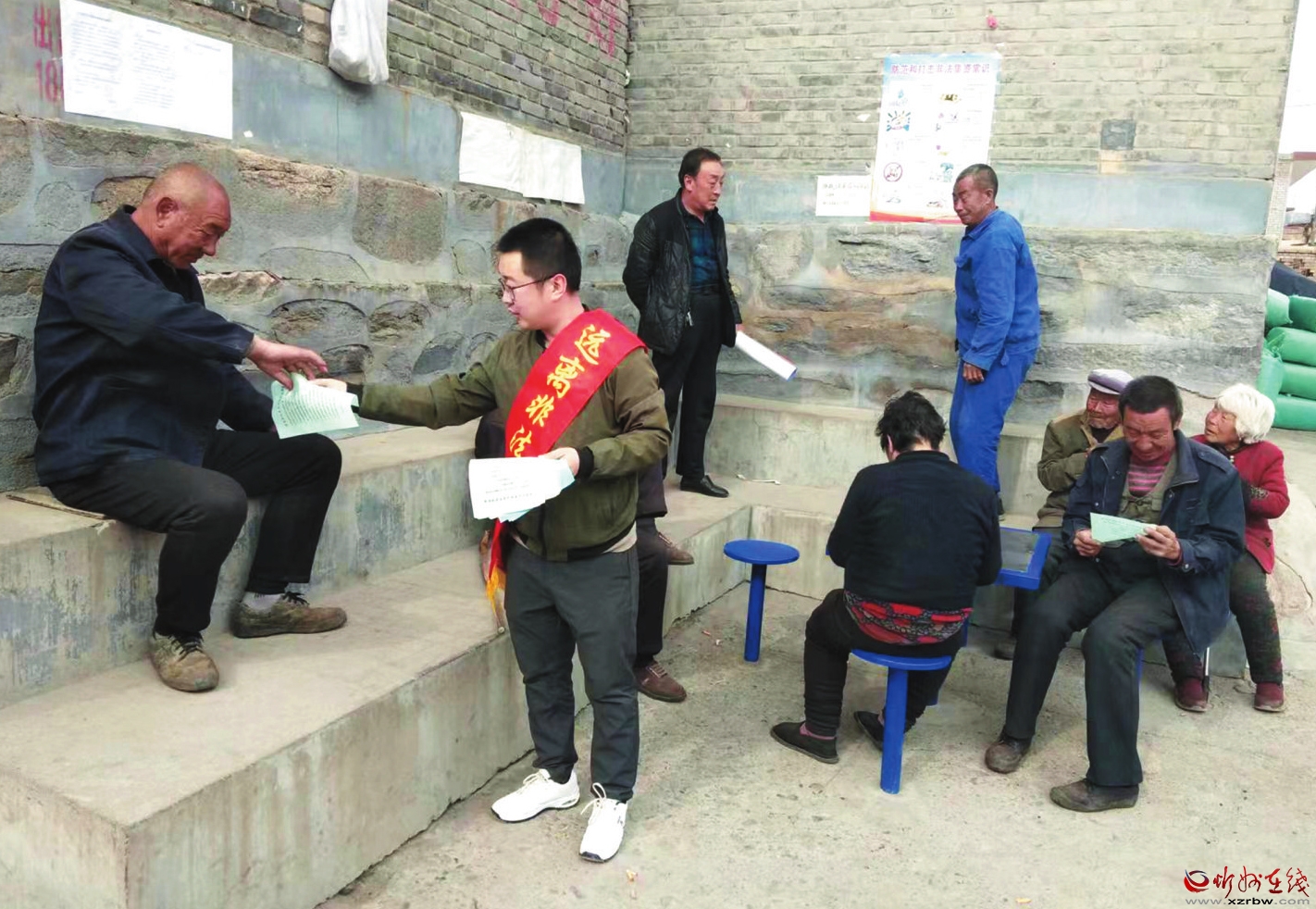 圖為工作人員向群眾發(fā)放宣傳資料。
