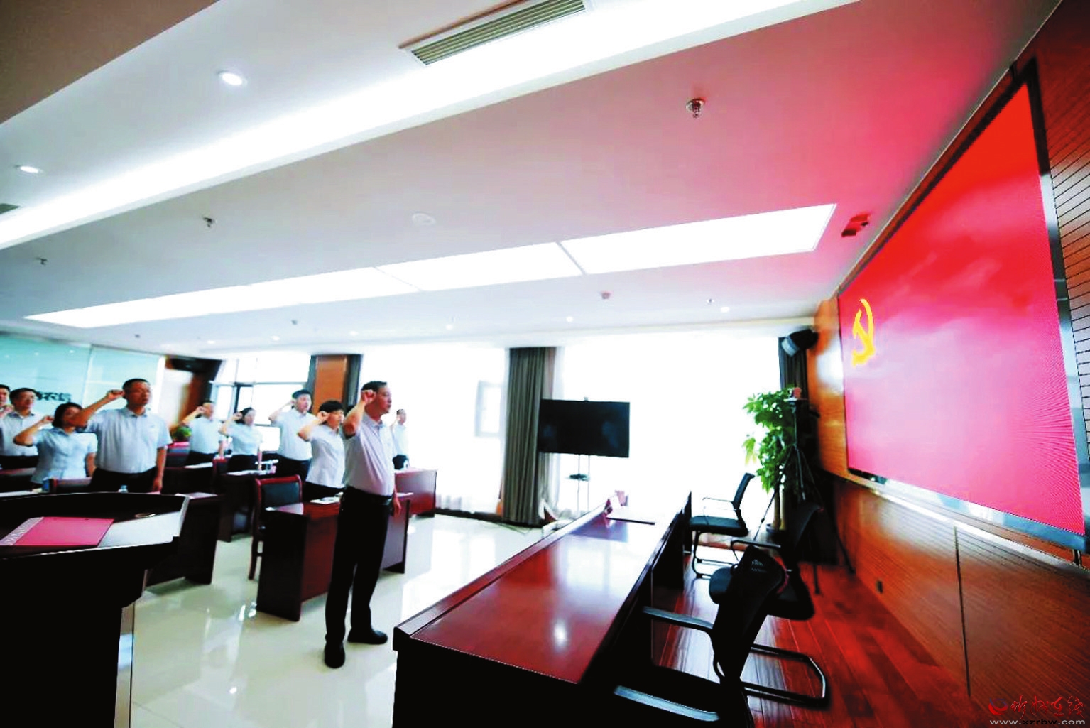 三要久久為功,堅(jiān)定永葆農(nóng)信清廉文化本色。探索清廉文化建設(shè)的新途徑,力求載體上多樣、內(nèi)容上豐富、形式上鮮活,充分調(diào)動(dòng)全員參與的積極性和主動(dòng)性。對(duì)內(nèi)推動(dòng)員工合規(guī)從業(yè),營(yíng)造風(fēng)清氣正的內(nèi)部環(huán)境,增強(qiáng)員工的向心力和凝聚力;對(duì)外傳導(dǎo)“用心服務(wù)、成就客戶(hù)”的服務(wù)理念,增強(qiáng)對(duì)客戶(hù)的感召力和誠(chéng)信度,構(gòu)建“平安、健康、和諧”的金融生態(tài)。持續(xù)加強(qiáng)黨風(fēng)廉政建設(shè),扎實(shí)開(kāi)展專(zhuān)項(xiàng)整治、以案促改、家風(fēng)教育、清廉典型選樹(shù)和常態(tài)化清廉文化宣傳教育,切實(shí)提高廉潔從業(yè)意識(shí),一體推進(jìn)“不敢腐、不能腐、不想腐”,為農(nóng)信事業(yè)穩(wěn)健發(fā)展提供堅(jiān)強(qiáng)保障。圖為全體黨員重溫入黨誓詞,并宣讀《山西農(nóng)信員工清廉宣言》。(任飛鴻攝影報(bào)道)