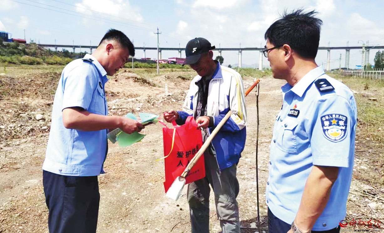 連日來(lái),五寨火車(chē)站派出所精心組織、全力投入,防范和嚴(yán)厲打擊各類(lèi)違法犯罪活動(dòng),深入開(kāi)展線(xiàn)路隱患排查整治活動(dòng),確保線(xiàn)路安全暢通。圖為民警在李家坪村對(duì)放牧戶(hù)進(jìn)行法治宣傳教育。(索效光 攝)