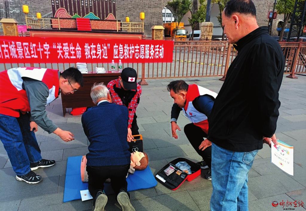 為進一步提高景區(qū)從業(yè)人員和游客的安全意識,增強應對突發(fā)狀況的能力,近日,忻州市紅十字會的志愿者們走進忻州古城景區(qū)開展應急救援培訓活動。