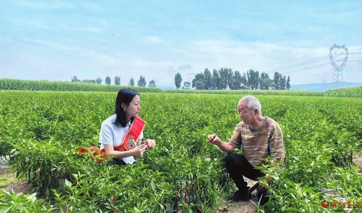 該行工作人員正在田間地頭進(jìn)行調(diào)研