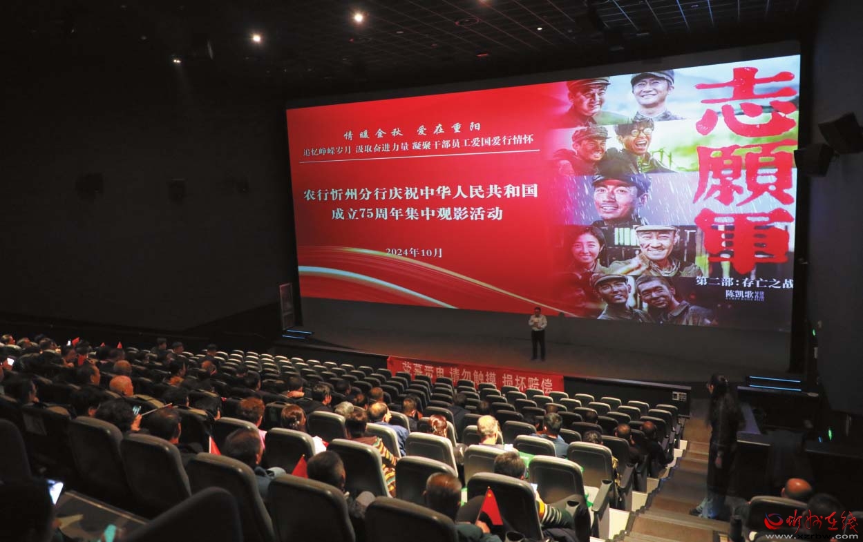 近日,農(nóng)行忻州分行組織機(jī)關(guān)員工和離退休職工共同觀看《志愿軍:存亡之戰(zhàn)》紅色電影。此次觀影活動(dòng),旨在追憶崢嶸歲月,汲取奮進(jìn)力量,凝聚愛國愛行情懷,激發(fā)員工奮斗精神,增強(qiáng)戰(zhàn)勝困難的信心和決心,以推動(dòng)全行高質(zhì)量發(fā)展。 (殷俊攝)