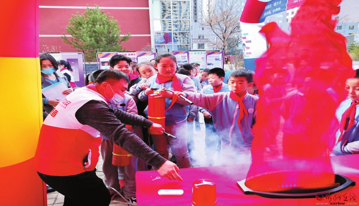 “家校平安”志愿者指導(dǎo)學(xué)生使用滅火器
