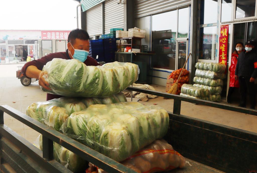 當日上午10時,記者在忻府區(qū)華瑞農副產品批發(fā)市場看到,商戶們正在有條不紊地裝貨卸貨,白菜、豆角、茴子白、蘋果等群眾日常所需的蔬菜和水果供應充足。