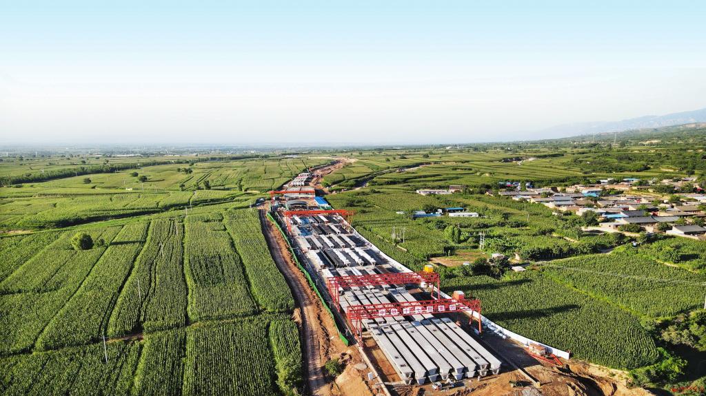 鳥(niǎo)瞰太忻大道忻州段施工現(xiàn)場(chǎng)。 記者 張存良攝