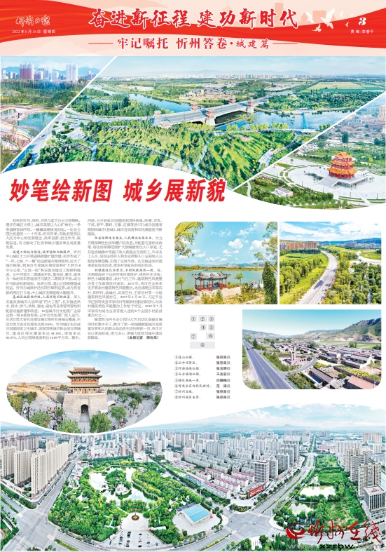 初秋的忻州,綠樹、花草與藍(lán)天白云交相輝映,漫步在城區(qū)大街上,城市美景讓人心曠神怡:一條條道路寬闊平坦,一幢幢高樓拔地而起,一處處公園生機盎然……十年來,忻州市委、市政府堅持以人民為中心的發(fā)展理念,改革創(chuàng)新、擔(dān)當(dāng)作為、砥礪奮進,有力推動了住房和城鄉(xiāng)建設(shè)事業(yè)高質(zhì)量發(fā)展。