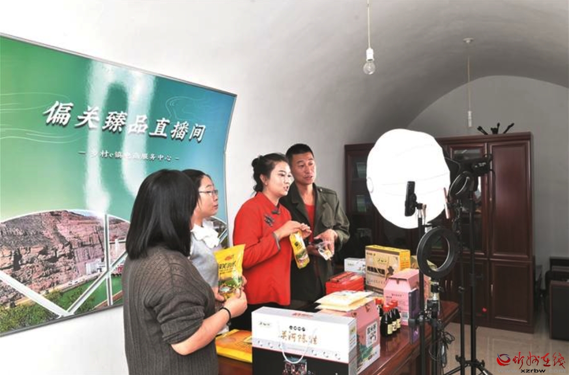 偏關(guān)鄉(xiāng)村e(cuò)鎮(zhèn)公共服務(wù)中心直播帶貨現(xiàn)場(chǎng)。本報(bào)記者 馮曉磊攝