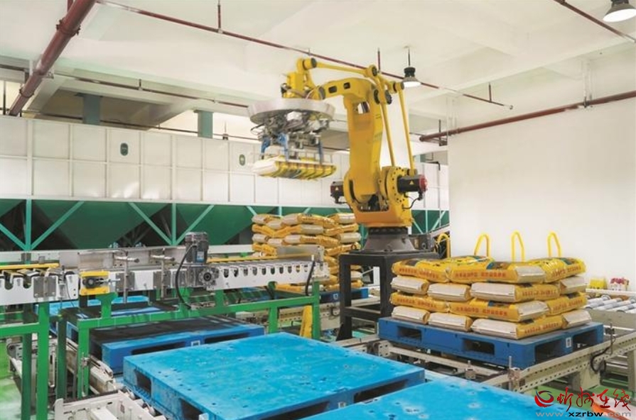 五寨益康農(nóng)產(chǎn)品加工廠自動化小米生產(chǎn)線一角。 劉篤效攝