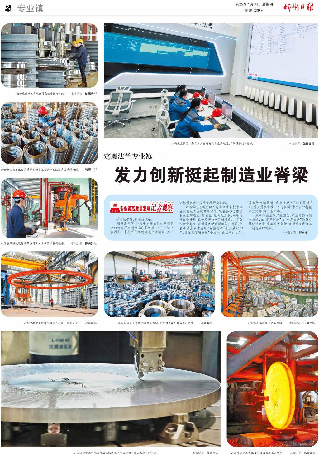 朔風(fēng)勁吹,中國(guó)鍛造之鄉(xiāng)百舸爭(zhēng)流千帆競(jìng)。 繁華北京,定襄法蘭強(qiáng)勢(shì)上榜“國(guó)家級(jí)中小企業(yè)特色產(chǎn)業(yè)集群”并再次刷新國(guó)家級(jí)專精特新“重點(diǎn)小巨人”企業(yè)數(shù)量,成績(jī)驕人; 海南博鰲,“新華·定襄法蘭產(chǎn)業(yè)綠色發(fā)展指數(shù)”高調(diào)發(fā)布,為全國(guó)鍛造產(chǎn)業(yè)綠色低碳發(fā)展樹立標(biāo)桿; 天津港口,定襄法蘭“揚(yáng)帆出?!?,走向世界,2024年前三季度,全縣已有52戶企業(yè)將業(yè)務(wù)版圖向國(guó)際擴(kuò)展…… 浪涌四方,潮起定襄。定襄,這個(gè)以法蘭鍛造聞名全國(guó)的晉北工業(yè)小城自2022年成功入選山西省首批十大省級(jí)重點(diǎn)專業(yè)鎮(zhèn)以來(lái),就開始了在法蘭產(chǎn)業(yè)賽道上的強(qiáng)勢(shì)進(jìn)階。去年以來(lái),定襄縣以黨的二十屆三中全會(huì)精神為指引,全面深化改革,用“高”“智”“綠”“服”的理念和行動(dòng),進(jìn)一步推進(jìn)法蘭產(chǎn)業(yè)質(zhì)量變革、效率變革、動(dòng)力變革。 “高”是一種姿態(tài),更是踐行國(guó)家戰(zhàn)略的擔(dān)當(dāng)。 制造業(yè)是立國(guó)之本、興國(guó)之器、強(qiáng)國(guó)之基。定襄縣全面落實(shí)中央、省、市關(guān)于推動(dòng)制造業(yè)高質(zhì)量發(fā)展的要求,以法蘭專業(yè)鎮(zhèn)建設(shè)為牽引,主動(dòng)融入科技強(qiáng)國(guó)、制造強(qiáng)國(guó)、質(zhì)量強(qiáng)國(guó)等國(guó)家戰(zhàn)略,舉全縣之力、聚各方之智,帶動(dòng)“定襄制造”這艘巨輪駛向更寬航道。 巨輪出海,把舵定錨。定襄縣科學(xué)制定一個(gè)目標(biāo)、兩輪驅(qū)動(dòng)、三大平臺(tái)、五個(gè)中心、六大園區(qū)的“12356”發(fā)展戰(zhàn)略,明確法蘭專業(yè)鎮(zhèn)建設(shè)產(chǎn)業(yè)重點(diǎn)領(lǐng)域、戰(zhàn)略任務(wù)、發(fā)展路徑、戰(zhàn)略舉措和功能區(qū)劃等,為巨輪亮“燈塔”、定“羅盤”;先后編制《定襄法蘭專業(yè)鎮(zhèn)實(shí)施方案》《定襄法蘭專業(yè)鎮(zhèn)三年行動(dòng)計(jì)劃》《定襄縣鍛造產(chǎn)業(yè)數(shù)字化、智能化發(fā)展的實(shí)施方案》等系列規(guī)劃和政策性文件,掛起“航海圖”,讓法蘭專業(yè)鎮(zhèn)建設(shè)向高坐標(biāo)布局、高緯度探索。 “智”是一種狀態(tài),也是對(duì)標(biāo)時(shí)代要求的氣魄。 產(chǎn)業(yè)躍升,離不開科技創(chuàng)新。法蘭專業(yè)鎮(zhèn)建設(shè)工作開展以來(lái),定襄縣深刻把握新質(zhì)生產(chǎn)力的豐富內(nèi)涵與實(shí)踐要求,沿著科創(chuàng)引領(lǐng)、智造變革的路子堅(jiān)定前行。 鼓勵(lì)企業(yè)開展自動(dòng)化改造、梯度培育“鏈主+鏈核+專精特新”企業(yè)、全面建設(shè)創(chuàng)新平臺(tái)……一套行之有效的“組合拳”加速定襄法蘭產(chǎn)業(yè)“智能化”進(jìn)程。去年以來(lái),定襄規(guī)上企業(yè)新增6戶,達(dá)到123戶;新增1戶國(guó)家級(jí)專精特新“小巨人”企業(yè)、2戶國(guó)家級(jí)專精特新重點(diǎn)“小巨人”企業(yè)、9戶省級(jí)專精特新企業(yè);先后培育3戶省級(jí)重點(diǎn)產(chǎn)業(yè)鏈“鏈核”企業(yè)、5戶省級(jí)重點(diǎn)產(chǎn)業(yè)鏈企業(yè)、94戶市級(jí)重點(diǎn)產(chǎn)業(yè)鏈關(guān)聯(lián)企業(yè)。定襄法蘭鍛造產(chǎn)業(yè)成功入選“國(guó)家級(jí)中小企業(yè)特色產(chǎn)業(yè)集群”,為全省唯一。 產(chǎn)學(xué)研深度融合是科技創(chuàng)新引領(lǐng)產(chǎn)業(yè)升級(jí)的關(guān)鍵一招。定襄縣在成立“定襄法蘭產(chǎn)業(yè)學(xué)院”培養(yǎng)儲(chǔ)備專業(yè)人才的同時(shí),先后與重慶大學(xué)、西安交通大學(xué)、山西大學(xué)、中北大學(xué)、太原科技大學(xué)等高校建立合作關(guān)系,暢通企業(yè)與技術(shù)專家團(tuán)隊(duì)對(duì)接通道,助力法蘭產(chǎn)業(yè)由“制造”向“智造”轉(zhuǎn)變。定襄縣已建成國(guó)家級(jí)法蘭鍛造產(chǎn)品檢測(cè)中心1個(gè)、通過(guò)CNAS認(rèn)證的實(shí)驗(yàn)室8個(gè)、省級(jí)技術(shù)創(chuàng)新中心2個(gè)、省級(jí)企業(yè)技術(shù)中心16個(gè)。 老樹發(fā)新芽。在科技創(chuàng)新引領(lǐng)下,定襄法蘭專業(yè)鎮(zhèn)建設(shè)動(dòng)能強(qiáng)勁,勢(shì)能充沛! “綠”是一種生態(tài),也是推動(dòng)產(chǎn)業(yè)長(zhǎng)遠(yuǎn)發(fā)展的智慧。 綠色發(fā)展是高質(zhì)量發(fā)展的底色。定襄縣在高質(zhì)量推動(dòng)法蘭專業(yè)鎮(zhèn)建設(shè)中,綠色低碳的理念正貫穿產(chǎn)業(yè)發(fā)展的全過(guò)程。 該縣全力抓好能耗雙控工作,堅(jiān)決遏制“兩高”項(xiàng)目盲目發(fā)展,積極推進(jìn)產(chǎn)業(yè)結(jié)構(gòu)、能源結(jié)構(gòu)和運(yùn)輸結(jié)構(gòu)調(diào)整,不斷優(yōu)化空間布局、調(diào)整產(chǎn)業(yè)結(jié)構(gòu),加快實(shí)現(xiàn)產(chǎn)業(yè)生態(tài)化、能源綠色化、生活低碳化;充分發(fā)揮省級(jí)數(shù)轉(zhuǎn)中心“金字招牌”作用,推動(dòng)鍛造企業(yè)精益數(shù)字化建設(shè),推動(dòng)財(cái)務(wù)、成本、能源與業(yè)務(wù)生產(chǎn)一體化管理,實(shí)現(xiàn)企業(yè)內(nèi)部資源的全面優(yōu)化和高效