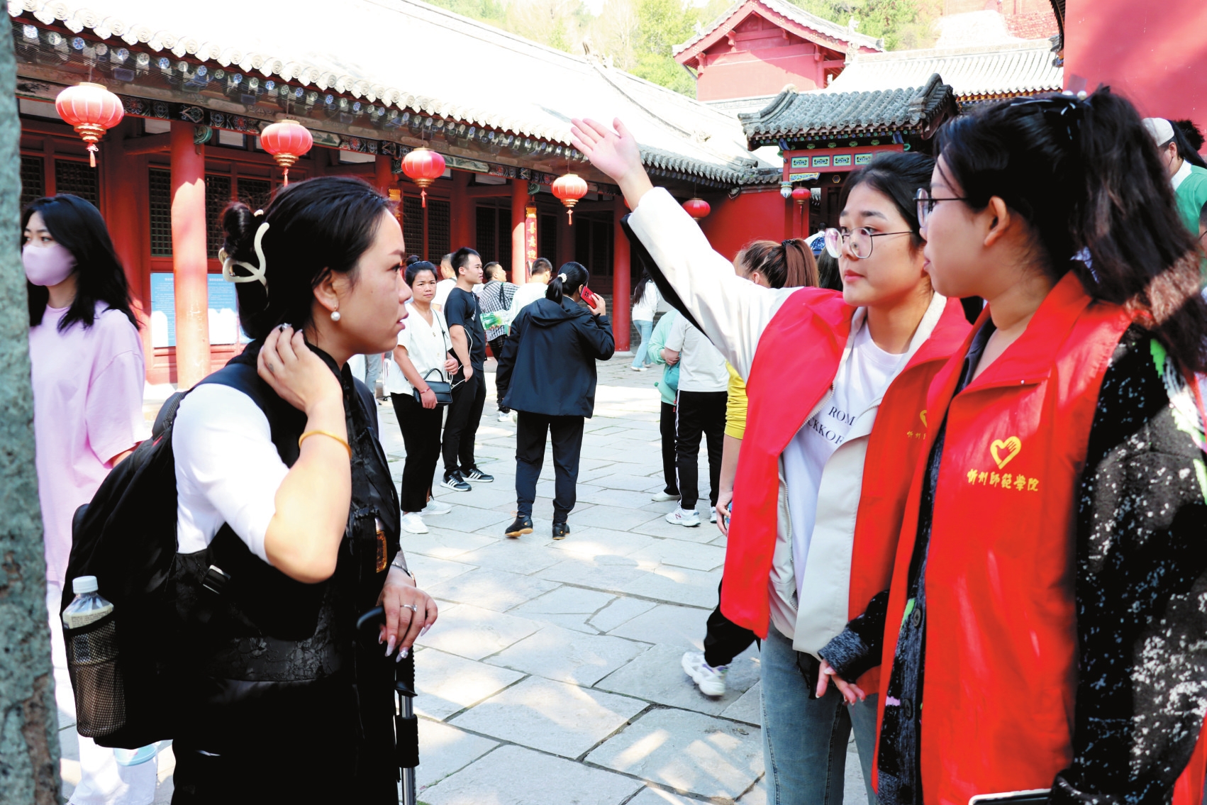五臺山風(fēng)景名勝區(qū)志愿者積極開展文明實踐活動,為游客提供全方位服務(wù)。本報通訊員攝
