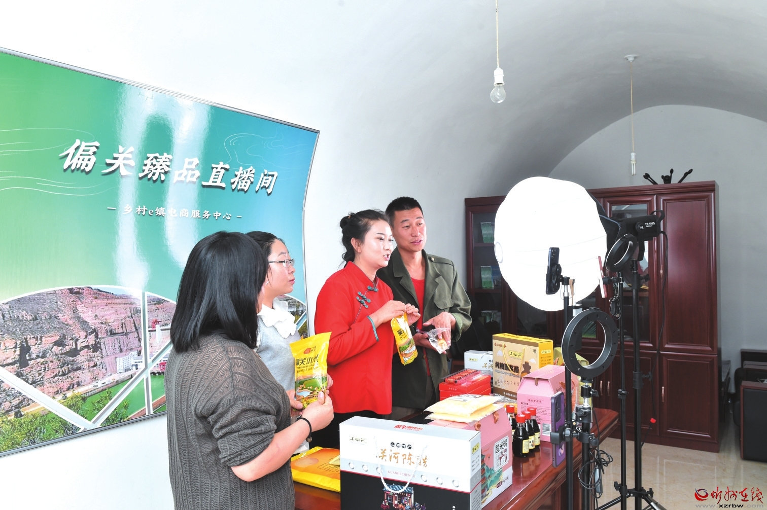 偏關(guān)鄉(xiāng)村e鎮(zhèn)公共服務(wù)中心直播帶貨現(xiàn)場。本報記者 馮曉磊 攝