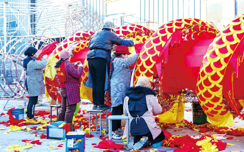 慶豐祥花燈廠工程師高海旺說(shuō):“我們?cè)诒A舸謇飩鹘y(tǒng)的花燈制作技藝之余,還積極革新。今年龍?jiān)鼗艉苁苁袌?chǎng)的追捧,不僅是省內(nèi),周邊省份也有很多訂單?!?/p>